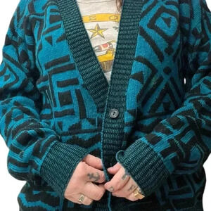 True Vintage 80’s Southwest Aztec Design button Cardigan oversized Small/medium