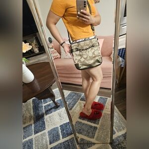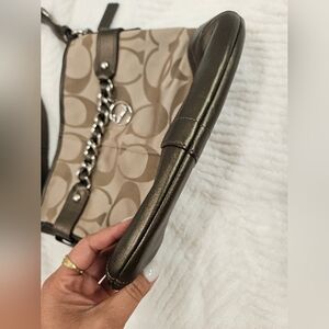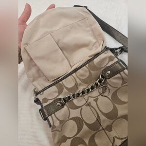 Coach Canvas Signature Chain Duffle Hangbag W/ Crossbody and Shoulder Bag