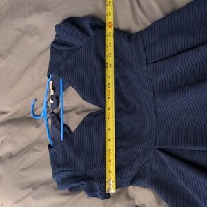 Chic blue mini dress with short sleeves and a peak a boo back size large made by Annabella. . Textured fabric adds elegance. Perfect for versatile styling.