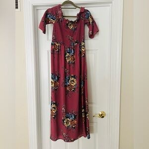 Super cute off the shoulder flowy maxi size PXL with stretch. Could be even cute for maternity.