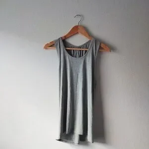 Stylish gray sleeveless tank top. Perfect for casual wear. Also great for working out or running errands.