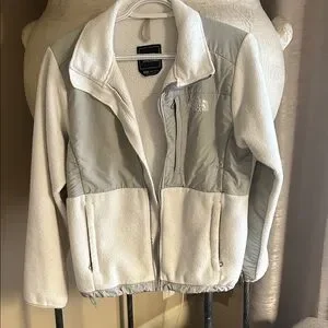 Stylish ski jacket with a cozy fleece interior. Perfect for cold weather activities. Missing the zipper. Please review photos before purchasing.