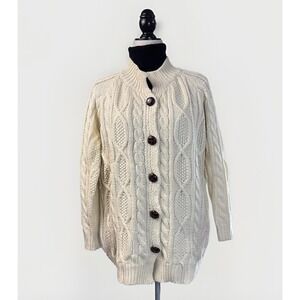 Chunky Cable Knit Fisherman Cardigan Sweater Big Buttons Soft Tunic Oversized OS