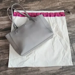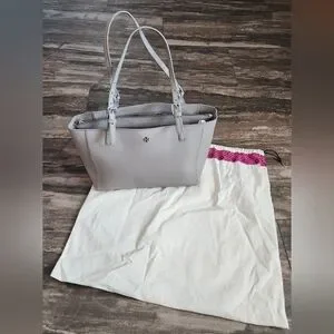 Tory Burch Light Grey Saffiano Leather Tote Bag