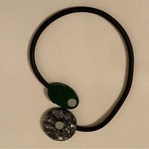 WOMENS JEWELRY NECKLACE BLACK RUBBER STRETCH 2 MINIMALIST DISC GREEN OVAL GRAY ROUND LUCITE MAGNETIC