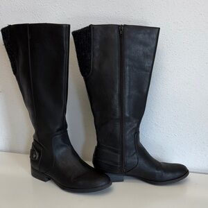Chic and versatile black knee high riding boots. Crafted for comfort and style.