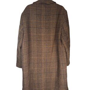 Zara Womens Large Plaid Wool Blend Coat Lined Double-Breasted Camel Navy Brown