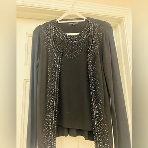 Knit Cardigan set in black with beading size medium by Pierri of New York