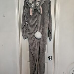 Adorable Disney bunny hooded onesie pajamas with ears and tail. Soft gray and cream fabric. Perfect for cozy moments.
