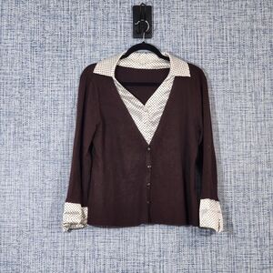 Carolyn Taylor Brown Cardigan with Polka Dot Details