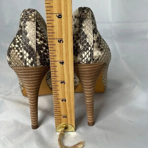 Women’s tan and grey Coach New York “Giovanna” Python Snake-skin Print Pumps.