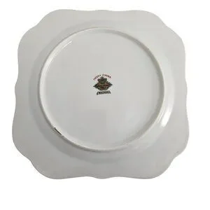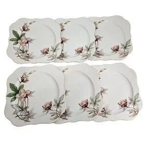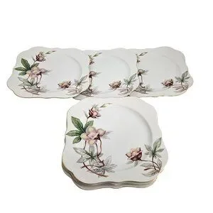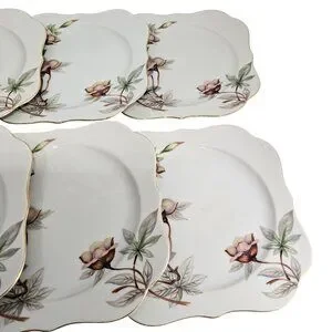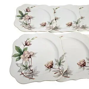 6 Blue Woodrose Square Lunch Plate 7.5" Meito Japan salad gold scalloped edge vt