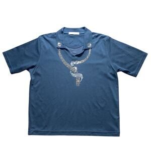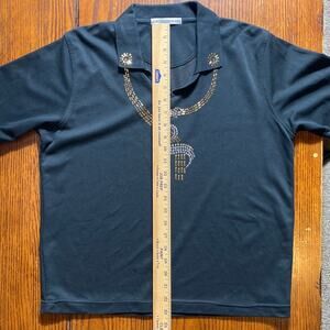 Bedazzled Sun Snake Egyptian Vibes Short Sleeve Port Authority Neck Detail Gold Large- Great used condition, beautiful detail. THIS SHIRT IS BLACK- size tag torn off