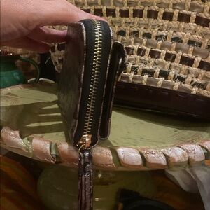 TAHARI Cheetah Print Zip Around Wallet with front credit card holder - Black/Gold