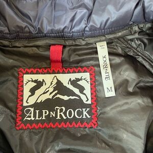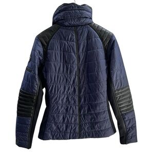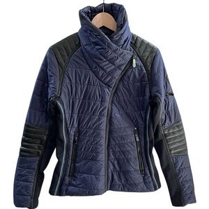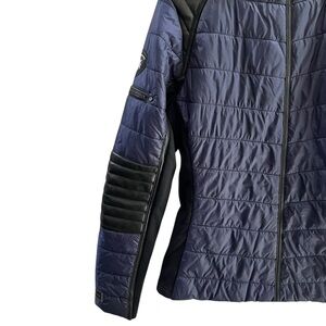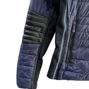Alp N Rock Moto Jacket. Navy blue with black accents. Size medium. Measures 19 inches pit-to-pit and 25.5 inches long. Sleeves measure 20.5 inches from underarm to cuff. Gently used condition.