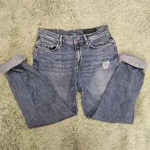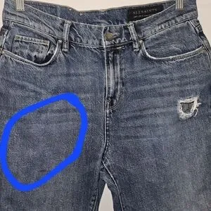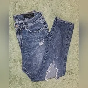 Allsaints Girlfriend Distressed Blue Jeans Size 28. Little spot on right side but not noticeable its in the photos that uploaded.