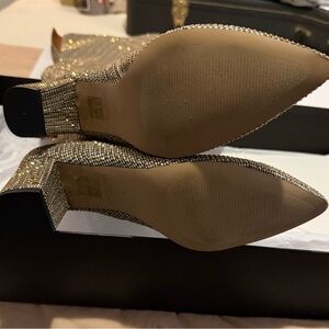 Burlington crystal thigh-high boots from Kurt Geiger London featuring beige, leather, crystal embellishment, gold-tone logo plaque, thigh-high, pointed toe, concealed side zip fastening and 60mm block heel.