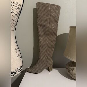KURT GEIGER LONDON Burlington Pointed Toe Over The Knee Boots in Dark Beige