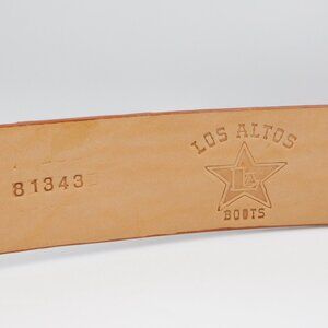 Los Altos Rustic Cognac Python Skin Cowboy Belt. Genuine python skin made in Mexico. The belt is handmade with the best quality Exotic skin. Fully lined in genuine leather. Removable buckle. Size 46. Measurements - 1.5" wide, 53.5" length of belt, buckle is 2.5" high x 3.75" long. In excellent used condition. Barely worn, if ever.
