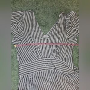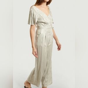 Viscose blend Thelma Jumpsuit,belted waist, V-neck,short-sleeves,side welt pockets,zipper on the back,Striped pattern made with Lurex