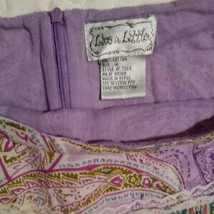The floral and lace pattern is perfect to wear with a jacket and boots. It is lined in a soft purple material. She zips up the back with a six inch zipper.