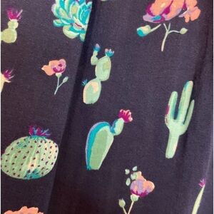 Roper~Navy Cactus Print Peasant Blouse~Empire Waist~Sheer Bell Sleeves~Size S