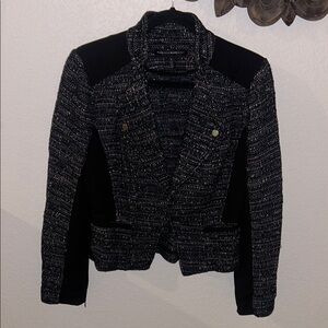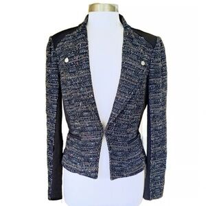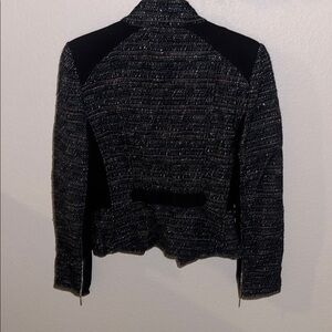 🖤WHBM Black Blue Gray Multi-Color Tweed Panel Moto Blazer Women’s Size 8