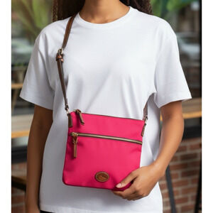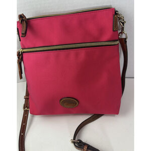 Dooney & Bourke Nylon Zip Crossbody Shoulder Bag Fuchsia Pink Leather Purse