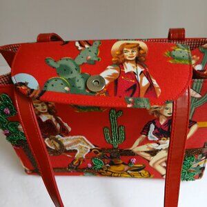 Retro 50's Red Rockabilly Pin Up Cowgirls with Beads & Sequins Shoulder Bag