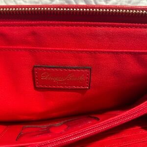 Elegant and stylish, this Dooney & Bourke red leather clutch is perfect for any occasion. Featuring a sleek design with a tassel accent, it adds a touch of sophistication to your ensemble.