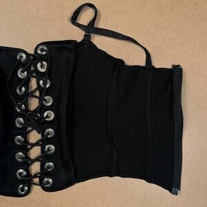 Y2K Lip Service Lace Up Front Corset Black Camisole Top XS Cami Vintage Goth