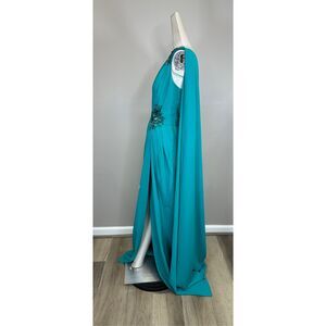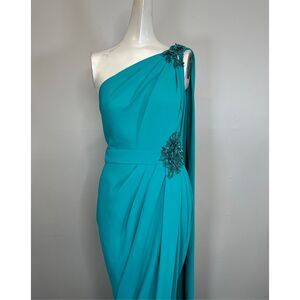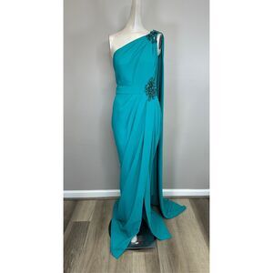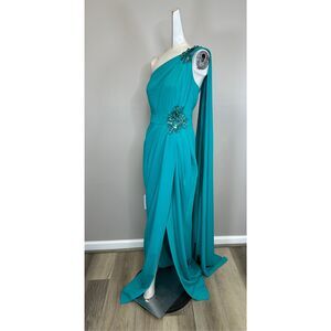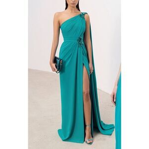 NWT Zuhair Murad Embellished Beaded Draped One-Shoulder Gown Blue Size 10 $4550