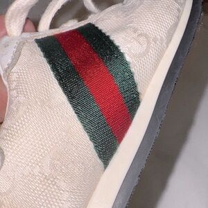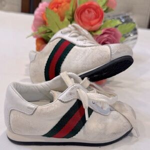 Authentic Toddler White Sneakers with Red and Green Stripes