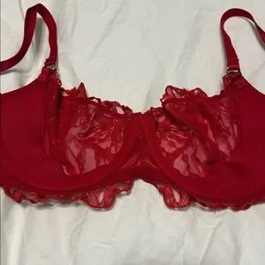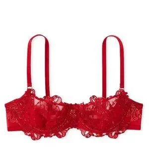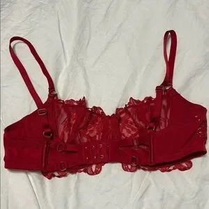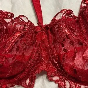 Balconette unlined bow and ribbon red bra with shimmer fabric.