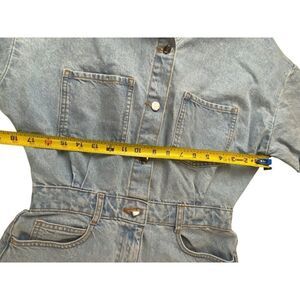 Zara Womens Romper M Blue Denim Jean Light Wash Short Sleeve 7147/035 NWT