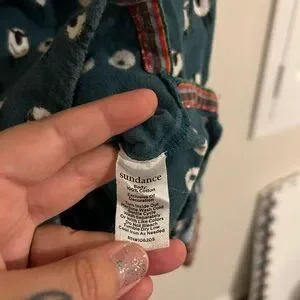 Adorable Sundance pajama set with sheep design. Soft fabric for a cozy sleep. Vibrant accents add charm. I love these pajamas so much but they just don’t fit me- I would say that although they are a size XL, they fit more like a L.