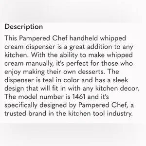 Pampered Chef Whipped Cream Maker Handheld Whipping Cream Dispenser #1461