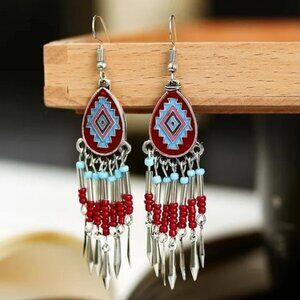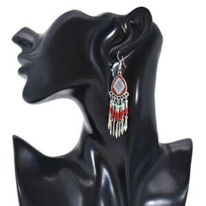 Red Boho Tribal Beaded Dangle Earrings Gypsy Ethnic Festival Jewelry Gift