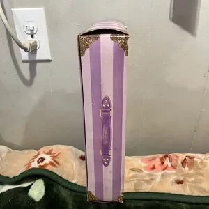 Elegant Victorian doll in a purple dress with a matching hat. Perfect for collectors.