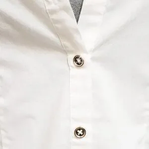 Fitted simple button up top with lacy slight balloon sleeves and gold metallic buttons.