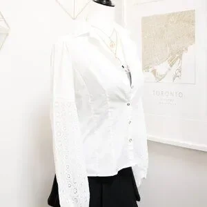 White Lace Sleeve Button Down Blouse 🕷️ ROMIMONA