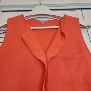 NAKED ZEBRA Ruffle Jersey Top Orange Sleeveless V Neck Front Pocket Women Small