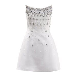 NWT Embellished Crystal Pearl Bridal Mini Dress