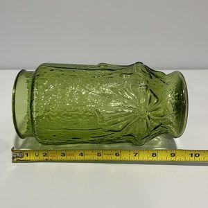 Vintage Avocado Green Anchor Hocking Spring Rain Flower Glass Tall Canister