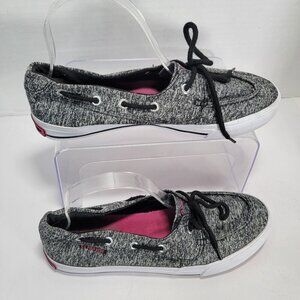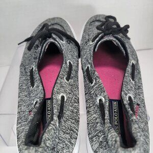 U.S. Polo Assn. Womens 8.5 Gray Black Slip-On Canvas Boat Shoes Loafer Preppy