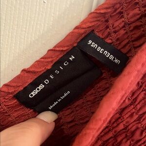 Stylish ASOS jumpsuit in a rich rust hue. Features tie straps and a flattering fit. Perfect for any occasion.