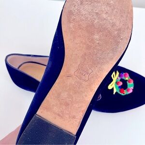 Talbots Navy Velvet Christmas Wreath Flats, Size 9