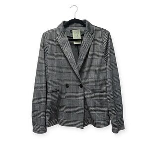 Chic plaid blazer with a modern fit. Double-breasted style. Perfect for versatile wear.