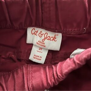 Bundle of two Cat & Jack boys full length toddler pants size 3T. Both have elastic waist, drawstring and pockets. Red Joggers are a dark red/maroon color. Jeans have a little bit of stretch. Length measurements in photos. Perfect for fall and winter.
