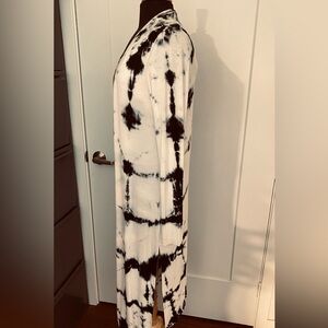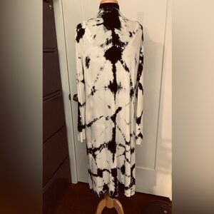 Stylish black and white tie-dye long Duster Perfect for layering. Machine washable Rayon grape for traveling.Vintage